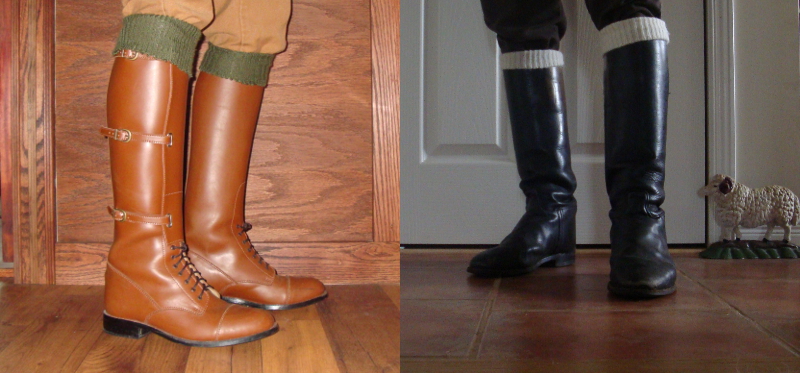 Socks seemed to be a less particular purchase. They were quite inexpensive when compared to other items in Kate Tattersall’s ledger, most of wool, some cashmere. (Silk socks were also made at the time.) She wrote in her diaries about knitting socks on several occasions. Were socks just added for colder weather? Thick socks were made specifically for bed. What could be better than a thick pair of socks inside velvet slippers when rising on a frosty winter day? Her shoemaker crafted custom footwear to fit Kate’s feet, ankles, calves and shins, following every contour, and perhaps her winter boots had room for three of four layers, but that is never specifically referred to. As I quoted in the previous article, layers of socks were definitely worn, The Magazine of Domestic Economy, London 1841, recommending three or more pairs for cold weather. When examining quartermaster lists for general officers on campaign, their silk stockings and wool socks are listed, with funds allotted for both. This is one of those details costumers often get wrong for period pieces, as though people didn’t get cold feet in the past. There is no doubt, those who could afford them wore various layers of hose, stockings, and socks, and often possessed fur-lined winter boots. As an alternative, heavy wool socks were crafted to wear over boots, and the early rubber galoshes were based on this practical solution for cold weather.