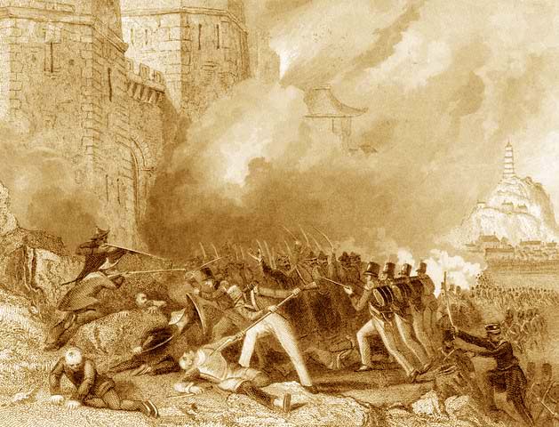 Chin-Keang-Foo — Undated illustration depicting an Opium War battle scene. British troops capture Chin-Keang-Foo, July 1st, 1842. — Image by © Bettmann/CORBIS